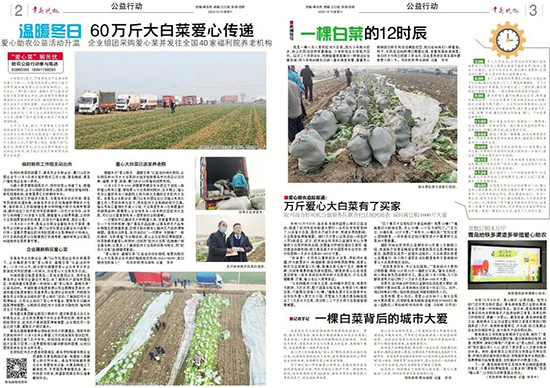 根據(jù)本次”愛心助農(nóng) 溫暖冬季“公益活動相關(guān)規(guī)劃,企業(yè)購買的60萬斤大白菜將分批發(fā)放到青島市內(nèi)四區(qū)以及濟南、淄博、東營、珠海、澳門共計40家福利院養(yǎng)老院。