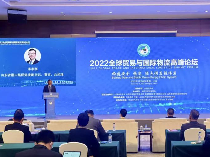 11月8日,由交通運(yùn)輸部支持,中國(guó)交通運(yùn)輸協(xié)會(huì)主辦,山東省港口集團(tuán)、上海海事大學(xué)等四家單位聯(lián)合主辦的2022全球貿(mào)易與國(guó)際物流高峰論壇在上海國(guó)家會(huì)展中心舉行,山東港口參加論壇。山東港口黨委副書(shū)記、董事、總經(jīng)理李奉利現(xiàn)場(chǎng)致辭,介紹山東港口服務(wù)和保障供應(yīng)鏈舉措,圍繞保障產(chǎn)業(yè)鏈韌性與安全發(fā)出山東港口倡議。山東港口《立體互聯(lián)港口智能空軌集疏運(yùn)系統(tǒng)》《“陸海通”數(shù)字智慧物流平臺(tái)》入選2022物流與供應(yīng)鏈(中國(guó))解決方案TOP50。山東港口黨委常委、副總經(jīng)理馬德亮參加活動(dòng)。